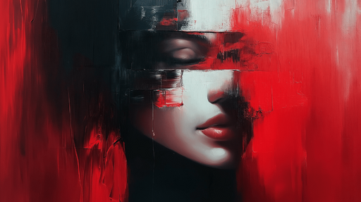 Vollständige Details anzeigenTapete abstrakt | Stilisiertes Porträt mit roten und schwarzen Akzenten