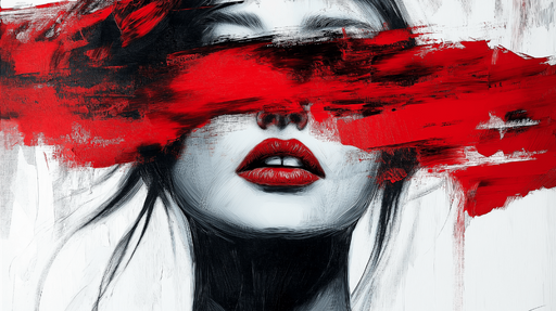 Vollständige Details anzeigenTapete abstrakt | Stilisiertes weibliches Gesicht mit Akzenten in lebhaftem Rot