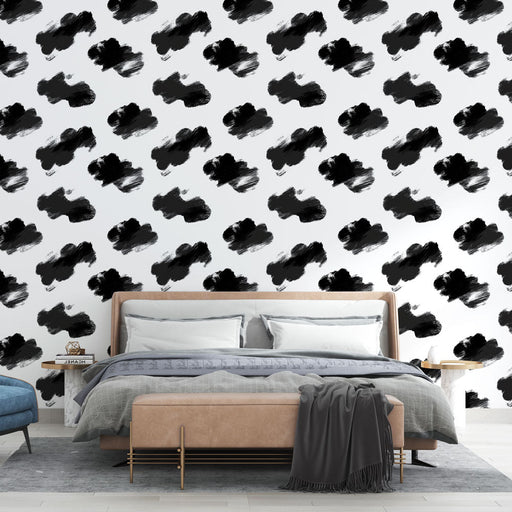 WonderMuralDiese Tapete zeichnet sich durch ein abstraktes Muster von Wolken in schwarzen Abstufungen auf einem hellen weißen Hintergrund aus. Die unregelmäßi...