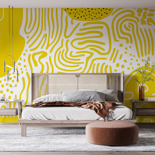 WonderMuralEntdecken Sie unsere Tapete mit abstrakten Mustern, die Ihre Räume mit lebendigen gelben Farbtönen gegen einen hellen weißen Hintergrund verschöner...