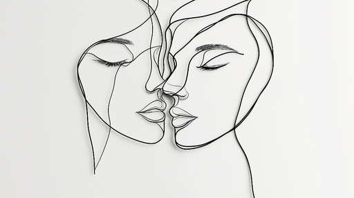 WonderMuralDiese minimalistische Tapete zeigt zwei ineinander verschlungene Gesichter, die mit klaren schwarzen Linien gezeichnet sind. Der Kontrast von Schwa...