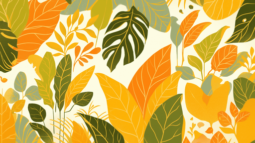 WonderMuralBeleben Sie Ihr Interieur mit dieser Wandtapete mit tropischem Laub in Herbsttönen. Die stilisierten Blätter in warmen Farbtönen von Orange, Gelb, ...