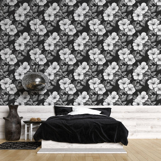 WonderMuralDiese Tapete hebt ein wunderschönes schwarz-weißes Hibiskusmuster hervor und verleiht Ihrem Interieur eine elegante und raffinierte Note. Die stili...