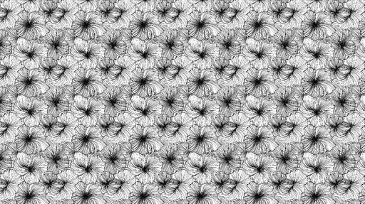 Vollständige Details anzeigenFototapete floral schwarz und weiß | Lineare florale Muster mit dunklen Zentren