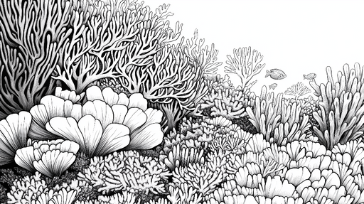Vollständige Details anzeigenTapete koralle | Detaillierte Korallenillustration in Schwarz-Weiß