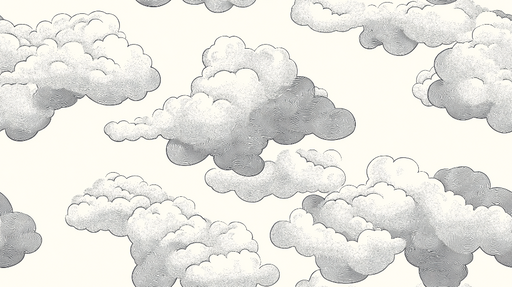 WonderMuralUnsere Fototapete zeigt ein exquisites Muster von stilisierten Wolken, die mit zarten Linien illustriert sind und eine beruhigende und elegante Atm...