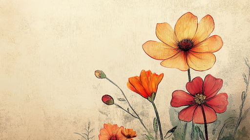 WonderMuralDiese Fototapete hebt ein lebhaftes Blumendesign hervor, mit Blumen in Gelb-, Orange- und Rottönen auf einem hellen Cremehintergrund. Die zarten De...