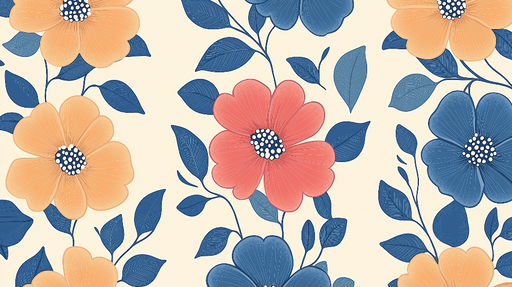 Vollständige Details anzeigenTapete floral | Farbenfrohe Blumenmuster in Orange- und Blautönen
