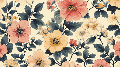 Tapete floral | Helle Blumen auf cremefarbenem Hintergrund