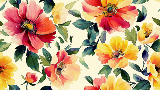 Vollständige Details anzeigenTapete floral | Helles Muster aus bunten Blumen auf cremefarbenem Hintergrund