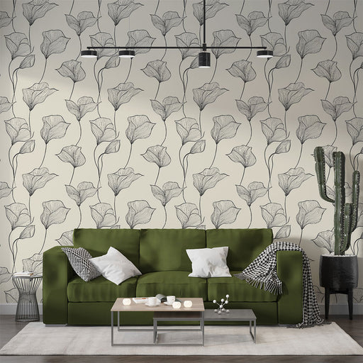 WonderMuralUnsere exklusive Tapete zeigt ein wunderschönes skizziertes Blumenmuster und bietet eine künstlerische Interpretation des klassischen botanischen S...