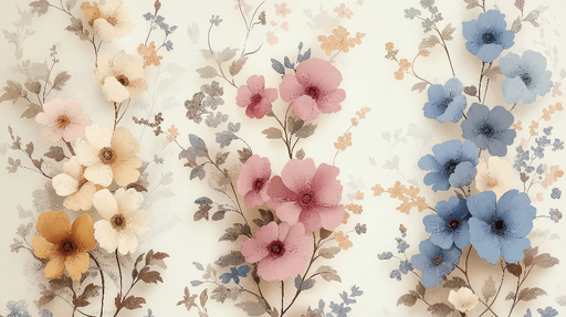 Vollständige Details anzeigenTapete shabby chic | Mehrere Pastellblumen auf einem weichen Hintergrund