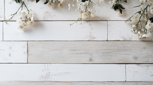 Vollständige Details anzeigenTapete shabby chic | Weiße Holzplanke und zarte Blumen