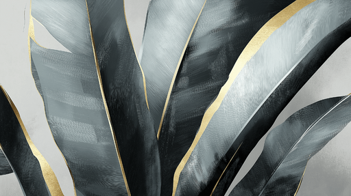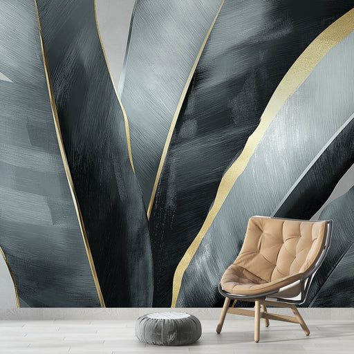 WonderMuralDiese Fototapete zeigt ein faszinierendes Muster von Blättern in Grautönen, das durch subtile goldene Akzente hervorgehoben wird. Die zarte Textur ...