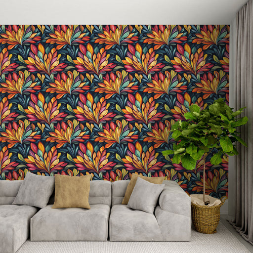 Vollständige Details anzeigenBunte Blätter Tapete | Stilvolle Blätter und lebendige Muster