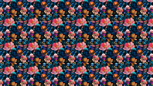 WonderMuralUnsere schöne Tapete zeigt ein raffiniertes Blumenmuster mit rosa, orangefarbenen und lila Blumen, die gegen einen dunklen Hintergrund blühen. Jede...