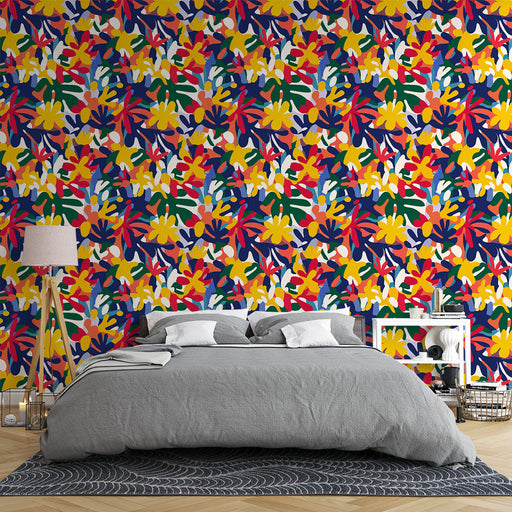 Vollständige Details anzeigenBuntes Blumentapete | Muster von Laub in hellen und kontrastierenden Farben