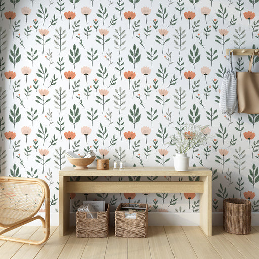 Vollständige Details anzeigenFlorale Tapete | Helles Blumenmotiv mit zarten Blättern