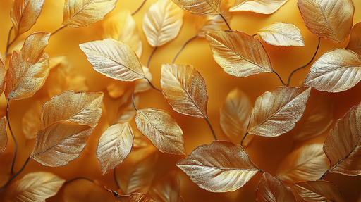 Vollständige Details anzeigenGoldenes Laub Tapete | Elegante Blätter auf einem warmen Hintergrund