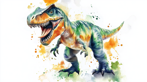 Vollständige Details anzeigenTapete dinosaurier | Bunter Tyrannosaurus mit Aquarellspritzern
