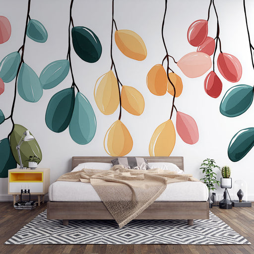 WonderMuralDiese bezaubernde Tapete zeigt ein elegantes Motiv von schwebenden Blättern in verschiedenen Farben, von Pastelltönen bis zu kräftigeren Nuancen. J...