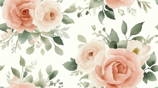 WonderMuralDiese Wandtapete zeigt ein prächtiges Aquarellblumenmuster in Pastelltönen, das Farben von Rosa, Pfirsich und Beige kombiniert. Die zarten Blumen, ...