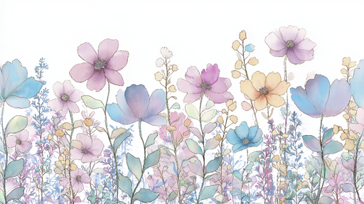 Vollständige Details anzeigenTapete Blumen Pastell | Ein zartes Farbverlauf von Aquarellblumen in sanften Farben
