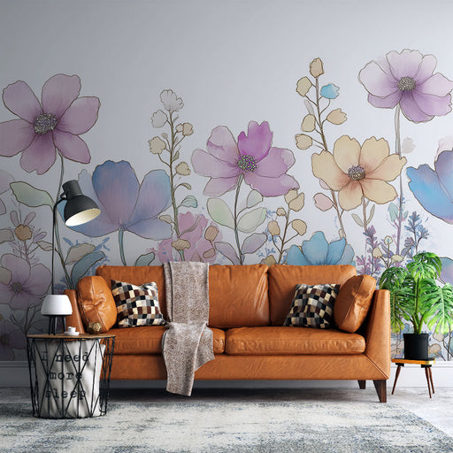 WonderMuralDiese helle Tapete zeigt ein bezauberndes Motiv von pastellfarbenen Blumen im Aquarellstil gezeichnet. Die dezenten Schattierungen von Rosa, Blau u...