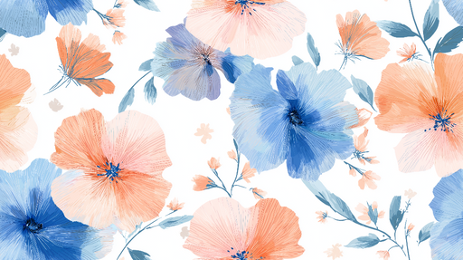 WonderMuralUnsere originale Tapete zeigt ein elegantes Blumenmuster, mit Blumen in Blau-, Korallen- und Pfirsichtönen. Die zarten Linien und Aquarellfarben br...