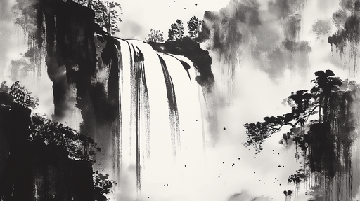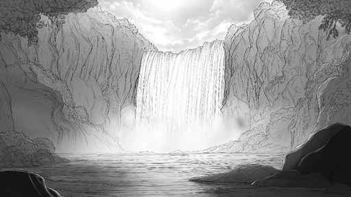 Vollständige Details anzeigenTapete monochrome-waterfall | Majestätischer Wasserfall in Schwarz-Weiß