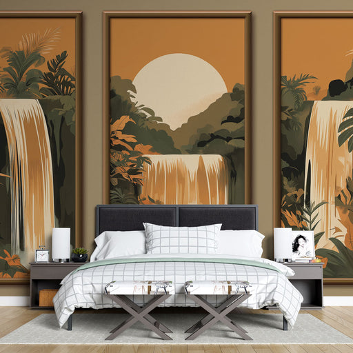 WonderMuralEntdecken Sie unsere Tapete, die die Schönheit von Wasserfällen im goldenen Licht eines Sonnenuntergangs evoziert. Das fesselnde Design zeigt eine ...