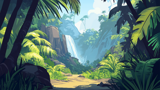 Vollständige Details anzeigenTapete jungle | Üppige Landschaft mit Wasserfall und tropischer Vegetation
