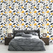 Unsere hervorragende Tapete ruft ein wunderschönes Muster von gelben Blumen und schwarzen Blättern auf einem hellen weißen Hintergrund hervor. Die Harmonie zwischen den hellen und dunklen Farbtönen schafft eine Atmosphäre, die sowohl fröhlich als auch anspruchsvoll ist, ideal, um Ihrem Interieur einen Hauch von Frische und Dynamik zu verleihen.