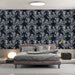 Entdecken Sie unsere barocke florale Tapete, die Ihrem Interieur eine elegante Note verleiht. Das Design zeigt anmutige Scrollen und stilisierte Blumenmuster in Grautönen, die einen markanten Kontrast zum Mitternachtsblau des Hintergrunds schaffen. Diese klassisch-moderne Mischung ist perfekt für Räume wie Wohnzimmer oder Schlafzimmer und bringt Tiefe und Raffinesse.