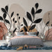 Tapete Botanique Moderne | Schwarze Pflanzenmuster auf neutralem Hintergrund mit Farbakzenten
