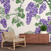 Dieses schäbige schicke Wandgemälde ist mit Büscheln von lila Glyzinien zart gezeichnet, was Ihrem Interieur eine Note von Frische und Romantik verleiht. Der weiße Hintergrund hebt die Lebendigkeit der Farben hervor, während die grünen Blätter eine Note natürlicher Eleganz hinzufügen.