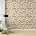 Diese Tapete zeigt ein bezauberndes Motiv von Papageien, die zwischen stilisierten Blättern und Blumen leben. Die Farbtöne Rot, Beige und Grün harmonieren, um eine tropische und warme Atmosphäre zu schaffen, die jeden Raum in einen wahren Ort der natürlichen Ruhe verwandelt.