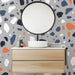 Tapete Badezimmer | Modernes Terrazzo-Design in Orange und Blau