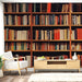 Verwandeln Sie Ihren Raum mit unserer Tapete Bibliothek, die Regale mit Büchern mit bunten Umschlägen zeigt. Dieses lebendige Design eignet sich perfekt, um Ihrem Interieur einen akademischen und künstlerischen Touch zu verleihen.