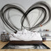 Diese Tapete zeigt ein elegantes Herz-Muster, das mit fließenden schwarzen Linien auf einem sauberen weißen Hintergrund gezeichnet ist. Der minimalistische Aspekt dieser Striche vermittelt den Eindruck von Bewegung und Leichtigkeit und ruft sowohl Liebe als auch Harmonie hervor. Das einfache, aber fesselnde Design verleiht jedem Raum eine künstlerische und zeitgenössische Note.