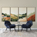 Diese Tapete ruft eine beruhigende Berglandschaft mit Grüntönen, Orange und Beige hervor, die eine warme und einladende Atmosphäre schafft. Die Konturen der Hügel verschmelzen harmonisch, während das üppige Laub dem Design eine natürliche und organische Dimension verleiht.