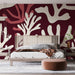 Diese Wandtapete zeigt ein abstraktes Korallendesign in warmen Rosa- und Beigetönen auf einem reichen Bordeaux-Hintergrund. Die fließenden und organischen Formen verleihen Ihrem Raum eine natürliche Eleganz und schaffen eine einladende und moderne Atmosphäre.