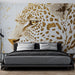 Diese Fototapete zeigt ein prächtiges Leopardenmuster, das mit künstlerischer Finesse in Weiß- und Goldtönen illustriert ist. Die Details der Flecken und die Struktur des Fells bringen dieses faszinierende Bild zum Leben und verleihen Ihrem Innenraum ein Gefühl von wilder Natur.