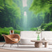 Diese Tapete zeigt eine bezaubernde Landschaft eines dichten Waldes mit verschiedenen Schattierungen von Grün, die die Ruhe und das Geheimnis der Natur hervorrufen. Funkelnde Bäche schlängeln sich durch moosbedeckte Felsen und schaffen eine ruhige und entspannende Atmosphäre, die ideal für Räume ist, die der Entspannung gewidmet sind.