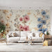 Um diese Tapete zu harmonisieren, sollten Sie neutrale und natürliche Farben wie Beige, Off-White oder Holztöne kombinieren. Dadurch können die Blumen subtil hervorstechen und gleichzeitig ein visuelles Gleichgewicht im Raum erhalten.
