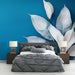 Jedes Blatt ist sorgfältig gezeichnet, wobei die Details der Adern und Textur hervorgehoben werden, wodurch die Wand zum Leben erweckt wird, während ein moderner Touch erhalten bleibt. Dieses Muster ist ideal für eine Inneneinrichtung, die sowohl schick als auch natürlich sein möchte, besonders geeignet für Wohnräume, Schlafzimmer oder Büros.