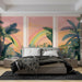 Το ταπετσαρία μας διαθέτει ένα εκπληκτικό τροπικό τοπίο με μαγευτικά φοίνικες που αναδύονται ενάντια σε έναν ουρανό με απαλές αποχρώσεις ροζ και πορτοκαλί. Ένα αστραφτερός ουράνιος τόξο διασχίζει τη σκηνή, προσθέτοντας μια πινελιά μαγείας σε αυτήν τη ζωντανή απεικόνιση της φύσης.