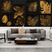 Αυτή η μοναδική ταπετσαρία τοίχου παρουσιάζει έναν κομψό σχεδιασμό από χειροποίητα χρυσά φύλλα σε ένα βαθύ μαύρο φόντο. Κάθε μοτίβο αποτυπώνει την ομορφιά της τροπικής βλάστησης, δημιουργώντας μια πολυτελή και δυναμική ατμόσφαιρα. Οι χρυσαφένιες αποχρώσεις λάμπουν με κομψότητα, ενώ το σκοτεινό φόντο αναδεικνύει την αντίθεση και την οπτική επίδραση.