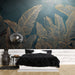 Το όμορφο μας ταπετσαρία τοιχώματος δείχνει ένα μοτίβο με μεγάλα λεπτομερή φύλλα με χρυσές περιγραμμένες γραμμές, ξεχωρίζοντας από ένα βαθύ μπλε φόντο. Οι λεπτές χρυσές γραμμές προσθέτουν μια πινελιά κομψότητας και πολυτέλειας, δημιουργώντας ένα αποτέλεσμα βάθους και διάστασης.