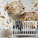 Αυτό το μαγευτικό ταπετσαρία τοίχου διαθέτει έναν γαλήνιο λεοπάρδαλη, ευαίσθητα εικονογραφημένο με μπεζ και καφέ κηλίδες, τόσο ρεαλιστικό που φαίνεται σχεδόν ζωντανό. Το τερακότα, το πράσινο και το μπεζ φύλλο το συνοδεύουν, δημιουργώντας ένα φυσικό και καταπραϋντικό σκηνικό που ξυπνά την ηρεμία της σαβάνας.